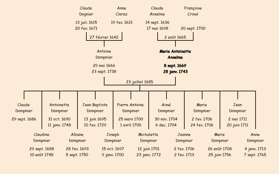 Epouse : Marie Antoinette Anselme, fille de Claude (égrège) |