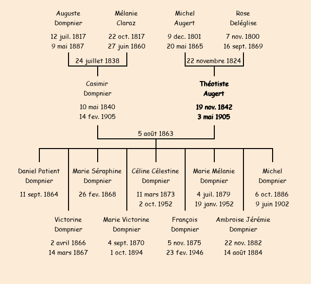 Théotiste Augert apparait dans le dénombrement de la population de 1881. |