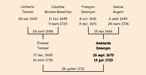 Amblarde Dominjon apparait dans le recensement de la population de 1716. |