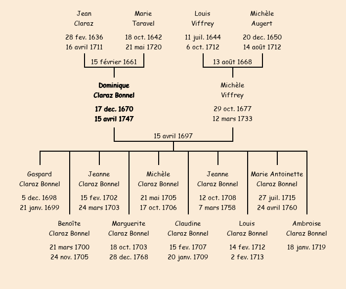 Père : Jean Claraz Bonnel | Parrain : Dominique Bonnel (fils de Louis) |