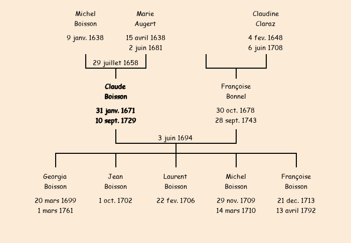 Claude Boisson apparait dans le recensement de la population de 1716. |