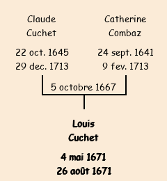 Père : Claude Cuchet | Parrain : Louis Sibué d'Alpettaz (fils de Colomban) |