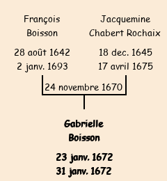 Mère : Jacquemine Chabert | Marraine : Gabrielle Boisson (fille de Pierre) |
