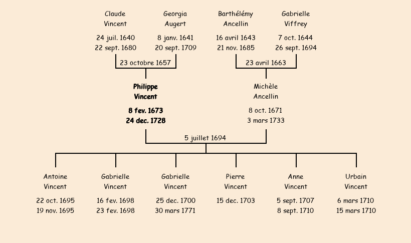 Philippe Vincent apparait dans la consigne des mâles de 1713 (absent). |