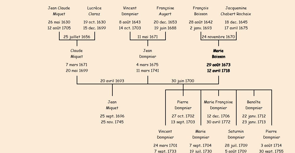 Epouse : Marie Boisson (veuve de Claude Miquet fils de Jean Claude), fille de feu François |