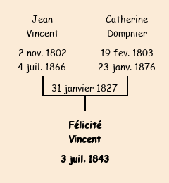 Mère : Catherine Dompnier (ménagère) | Marraine : Félicité Vincent (ménagère, épouse Covarel) |
