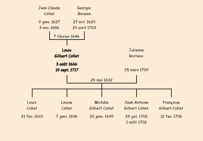 Louis Gilbert Collet apparait dans la consigne des mâles de 1713. |