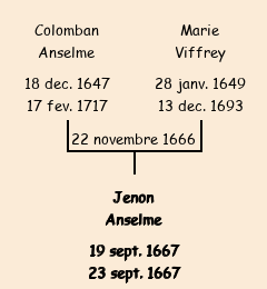 Père : Colomban Anselme, fils de Pierre | Parrain : Jacques Viffrey |