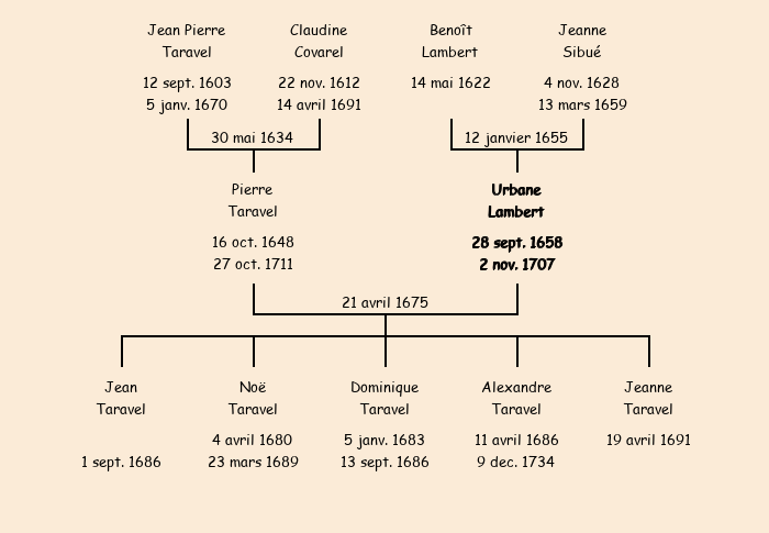 Mariée (16 ans) avec Pierre Taravel (26 ans) le 21 avril 1675 à Fontcouverte ![]() |