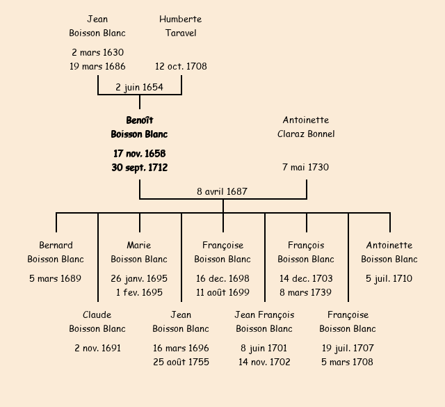 Père : Jean Boisson Blanc | Parrain : Benoît Taravel (fils d'Urbain) |