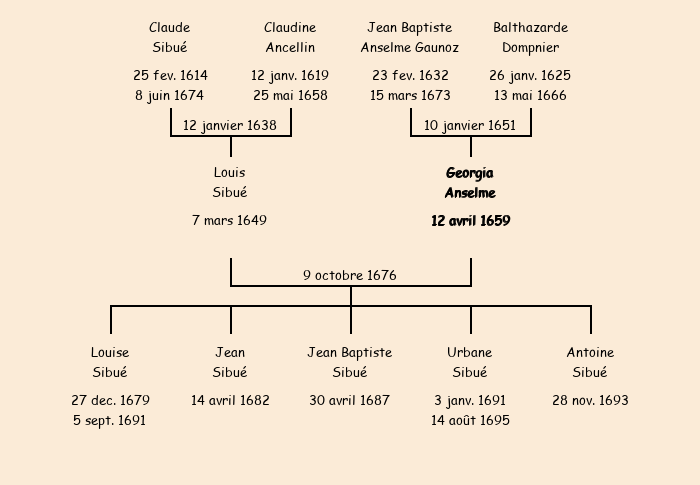 Mariée (17 ans) avec Louis Sibué (27 ans) le 9 octobre 1676 à Fontcouverte ![]() |