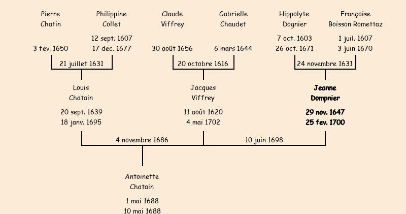 Epouse : Jeanne Dompnier (veuve de Louis Chatain), fille de Hippolyte |