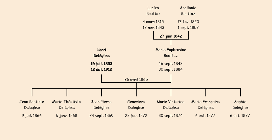 | Epoux : Henri Deléglise (32 anst, né le 15 juillet1833 à Villaremebert, cultivateur à Villarembert, a signé), fils de Jean Baptiste (cultivateur à Villaremebert, a signé) et de Marie Miquet (décédée le 24 février1856 à Villaremebert) |