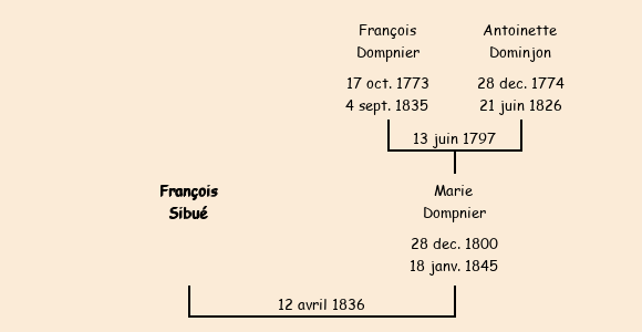 Epoux : François Sibué (de Saint Jean), fils de feu Vincent et de feue Caroline Martin |