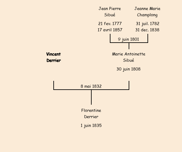 Epouse : Marie Antoinette Sibué, fille de Jean Pierre et de Jeanne Marie Champlong |