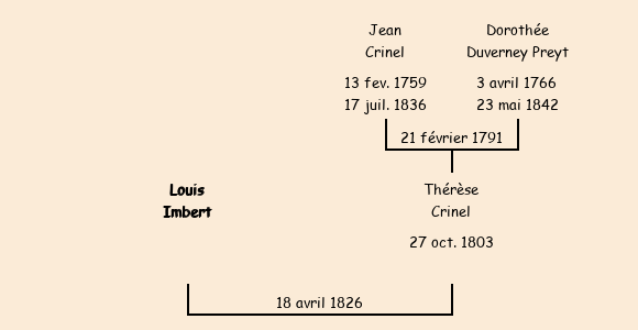 Epouse : Thérèse Crinel, fille de Jean et de Dorothée Duverney Preyt |