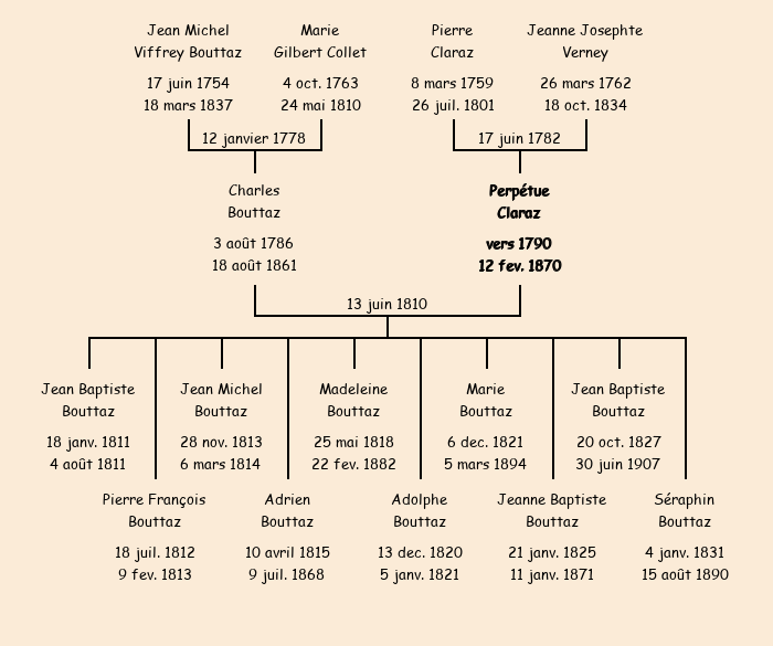 Epoux : Charles Bouttaz, fils de Jean Michel et de feue Marie Collet |