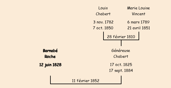 | Epouse : Généreuse Chabert (26 ans, a marqué), fille de feu Louis et de feue Marie Louise Vincent |