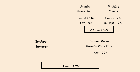 Epoux : Isidore Flammier (habitant de Jarrier), fils de feu Benoît et de Laurence Picton |