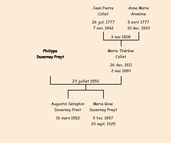Epouse : Marie Thérèse Collet (39 ans, a marqué), fille de feu Jean Pierre et de feue Anne Marie Anselme |