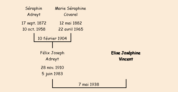 Epoux : Félix Joseph Adrait (27 ans, né à Fontcouverte le 28 novembre1910, domicilié à Vers le Rieux, charpentier), fils de Séraphin et de Marie Séraphine Covarel |