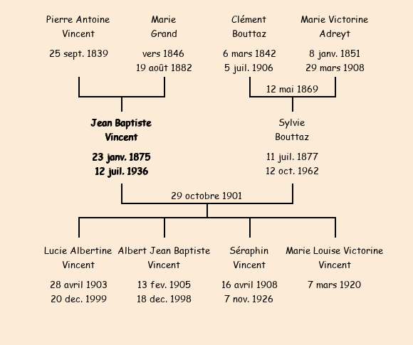 Epouse : Sylvie Bouttaz (24 ans, née le 11 juillet1877 à Pierre Pin), fille de Clément et de Victorine Adreyt |