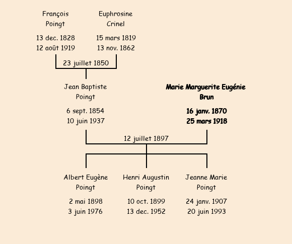 Déclarants : Jean Baptiste Poingt 64 ans, époux de la morte et Clément Poingt 60 ans, beau frère de la morte, domiciliés à La Brévière |