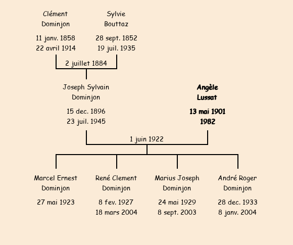 Epouse : Angèle Lussat (21 ans, née à Saint Pancrace le 13 mai1901), fille de Victorine Lussat (veuve Miquet) |