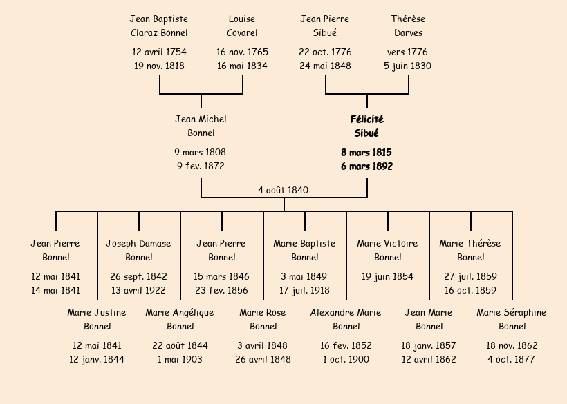 Epoux : Jean Michel Bonnel (33 ans, a marqué), fils de Jean Baptiste et de Louise Covarel |