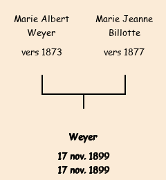 Père : Marie Albert Weyer (26 ans domicilié au Crêt, garde forestier né à Bulte arrondissement Epinal (Vosges 88) ) |