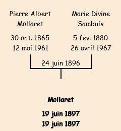 Père : Pierre Albert Mollaret (31 ans né et domicilié au Tilleray, cultivateur) |