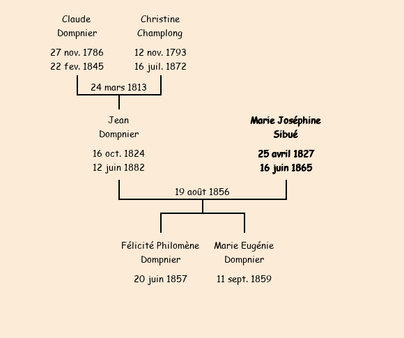 Fille de feu Pierre François Sibué feu Joseph et de Jeanne Marie Mollard à son mariage. |