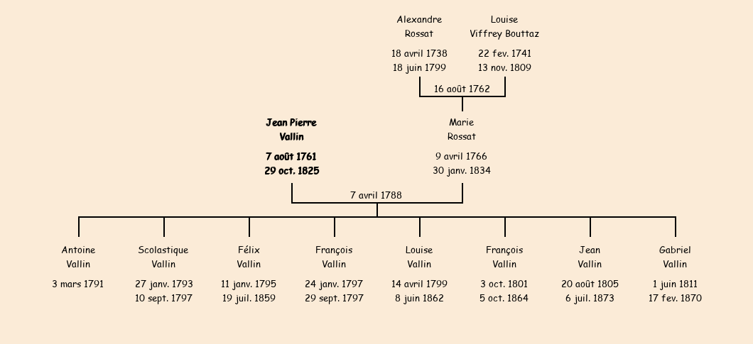 Epoux : Jean Pierre Vallin, fils de feu François et de Marie Dufreney |