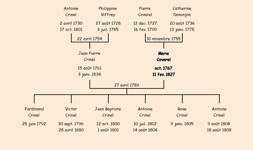 Epoux : Jean Pierre Crinel, fils de Antoine et de feue Philippine Viffrey |