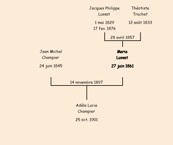 | Mariée (36 ans) avec Jean Michel Champier (52 ans) le 14 novembre 1897 à Saint-Pancrace |