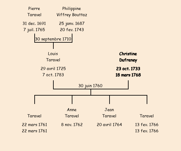 Epoux : Louis Taravel (veuf de Michelette Thorain), fils de Pierre |