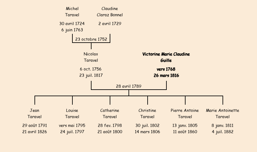 Victorine Marie Claudine Guille apparait dans la consigne du sel pour l'année 1790. |