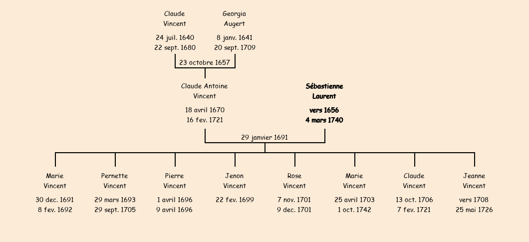 | Sébastienne Laurent apparait dans le recensement de la population de 1716. |