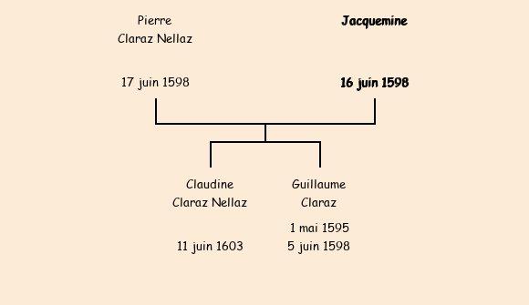 Acte de décès/sépulture de Jacquemine le 16 juin 1598