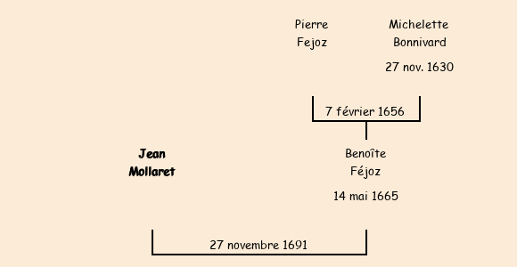 Acte de mariage de Jean Mollaret avec Benoîte Féjoz le 27 novembre 1691