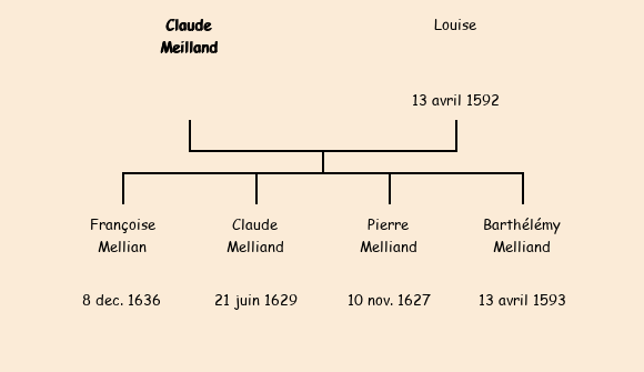 Vivant au décès de son épouse. Les filiations sont probables ! Dans la consigne du sel de 1561, il y a un Pierre Meilland, fils de Claude et de Claudine (il y a une soeur Michelette). |