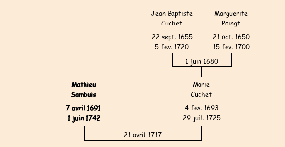 Epoux : Matthieu Sambuis (d'Albiez le Vieux), fils de Joseph |