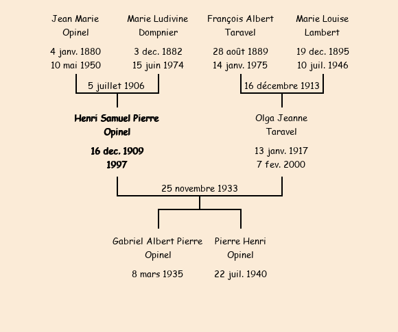 Epoux : Henri Samuel Pierre Opinel (23 ans, né à Albiez le Vieux le 16 décembre1909, coutelier), fils de Jean Marie (du Plan des Rois, coutelier) et de Marie Divine Dompnier |