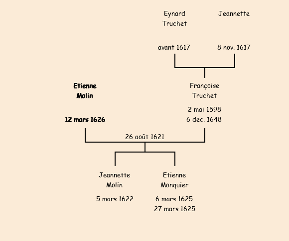 | Epoux : Etienne Molin, fils de Etienne (de Vaujany en Dauphiné, décédé) |