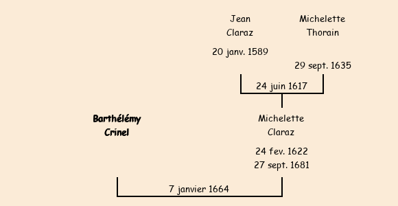 Acte de mariage de Barthélémy Crinel avec Michelette Claraz le 7 janvier 1664
