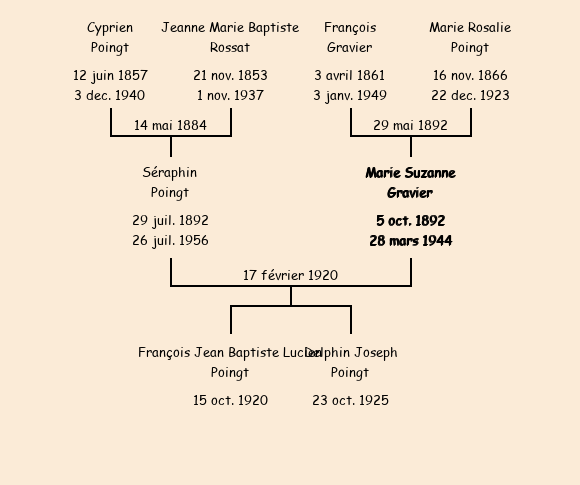 Mariée (27 ans) avec Séraphin Poingt (27 ans) le 17 février 1920 à Fontcouverte |