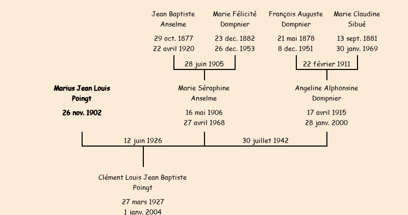 Epoux : Marius Jean Louis Poingt (23 ans, né à Albiez le Jeune le 26 novembre1902, domicilié à la Brévière), fils de Françoise Marie Alphonsine Poingt |