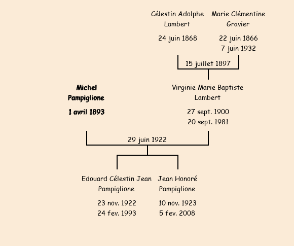 Epouse : Virginie Marie Baptiste Lambert (21 ans, née à Saint Jean de Maurienne le 20 septembre1900, de La Brévière), fille de Célestin et de Marie Clémentine Gravier |