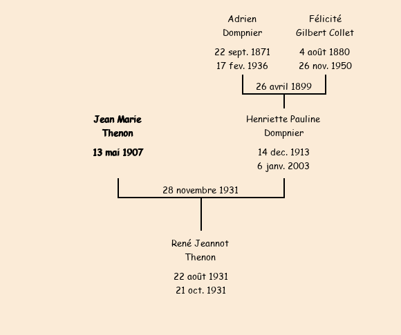 Epoux : Jean Marie Thenon (24 ans, né à Ambérieux en Dombes (Ain) le 13 mai1907, domicilié à Ambérieux en Dombes, électricien), fils de Pierre et de feue Marie Claudine Lardet |