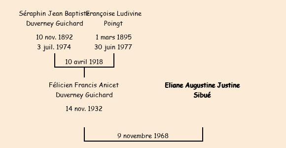 | Mariée avec Félicien Francis Anicet Duverney Guichard (35 ans) le 9 novembre 1968 à Saint-Jean-d'Arves |